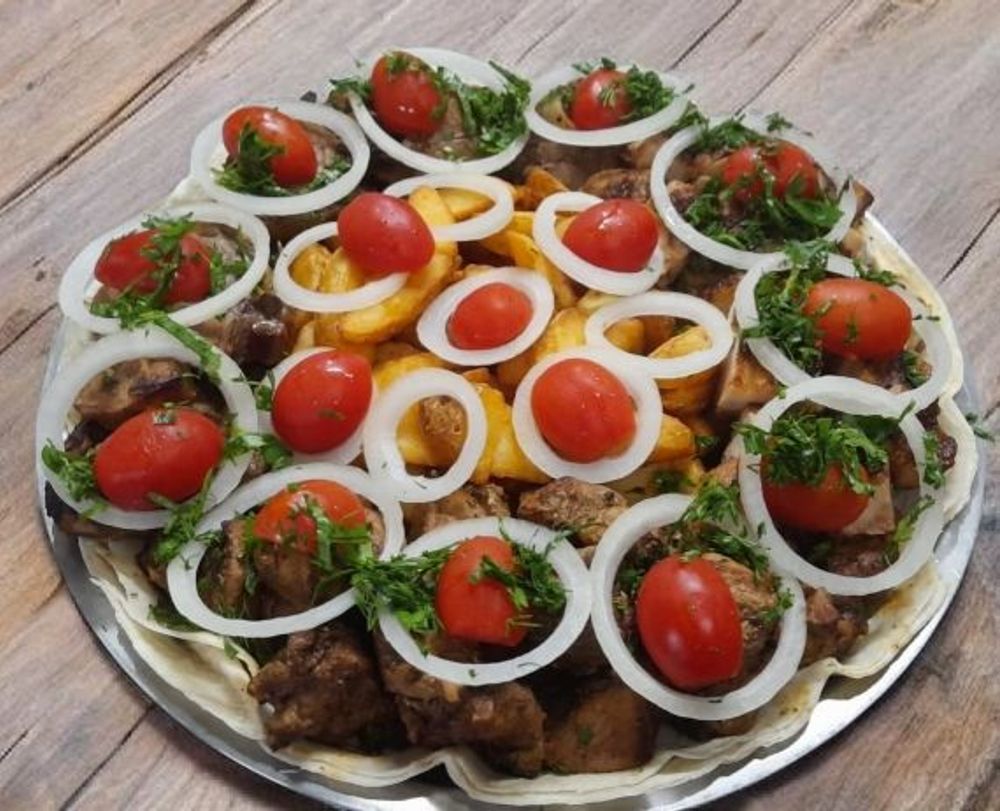 Шашлык из свинины 0,5 кг, шашлык из курицы (филе) барбекю 0,5 кг, люля-кебаб из курицы+баран 0,5 кг, картофель жареный по-деревенски 300гр, лаваш- 2 шт, оформление луком и помидорами 600р+ 500р залог поднос.