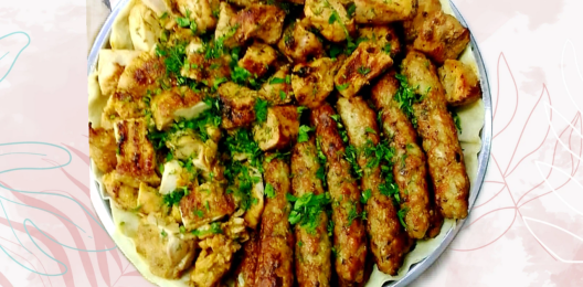Шашлык из свинины 1 кг, шашлык из курицы (филе) барбекю 1 кг, люля-кебаб из курицы+баран 1 кг, картофель жареный по-домашнему 600гр, лаваш- 2 шт, оформление луком и помидорами 700р+ 700р залог поднос.
