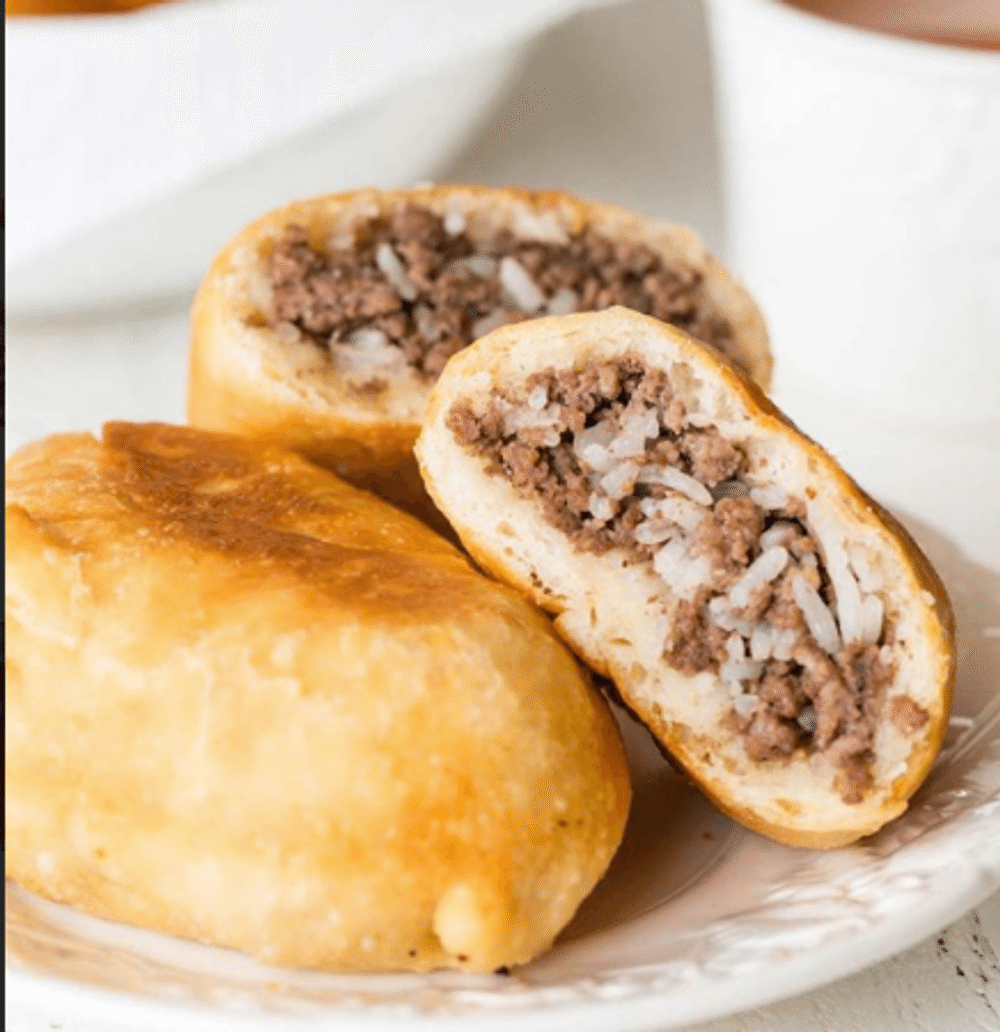 Тесто, фарш курино-говяжий, лук репчатый, рис